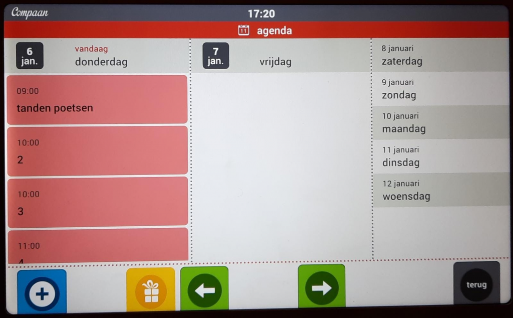 De agenda werkt naar behoren, maar heeft misschien iets te veel info om nog overzichtelijk te zijn.