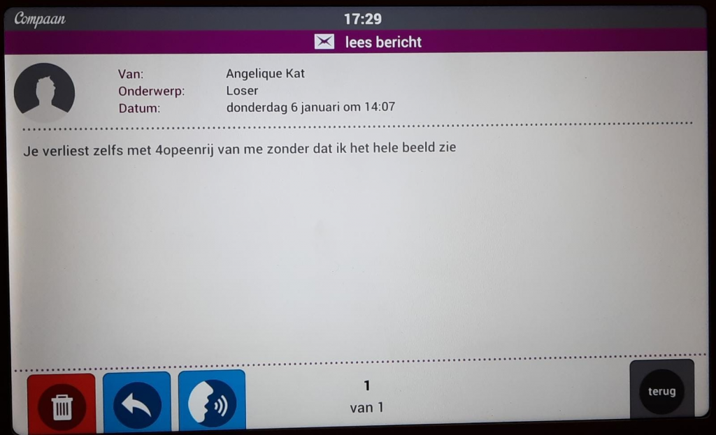 Onderaan het scherm is een knop die het bericht laat voorlezen.