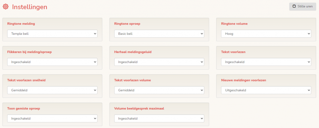 Op de klok zelf kan alleen het volume worden ingesteld in bepaalde situaties, voor de rest gaat alles via het portal.