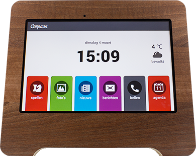 De Compaan kan videobellen via een eigen service. Dit werkt goed en makkelijk. Gesprekken kunnen vanaf zowel de klok als de beheerder worden gestart en opgenomen.